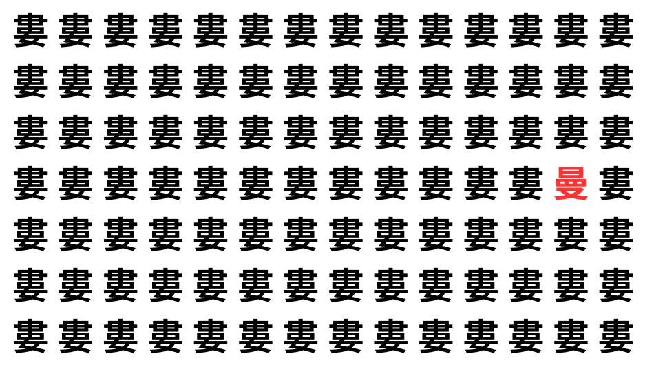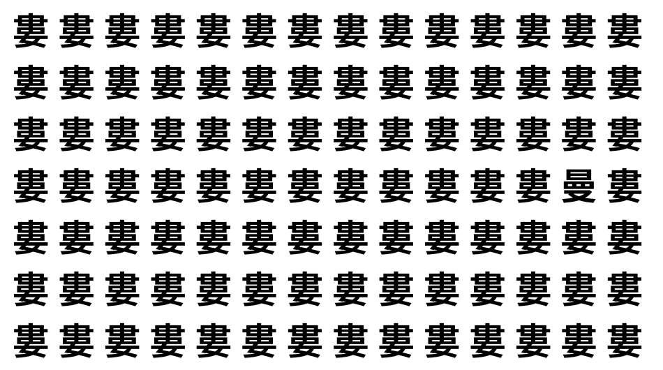 たくさんの「婁」の中に、よく似た別の漢字が1文字だけ隠れています。