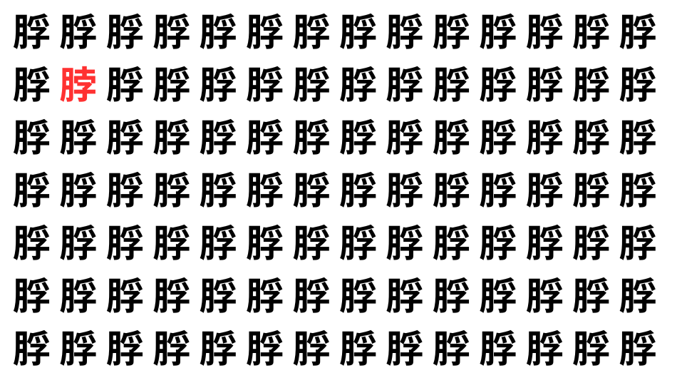 たくさんの「」の中に、よく似た別の漢字が1文字だけ隠れています。