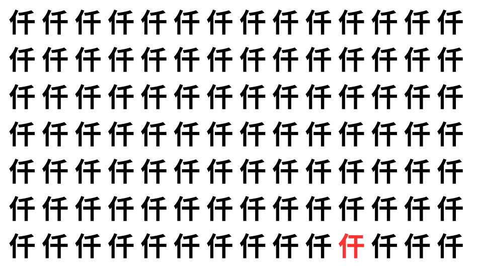 たくさんの「仟」の中に、よく似た別の漢字が1文字だけ隠れています。