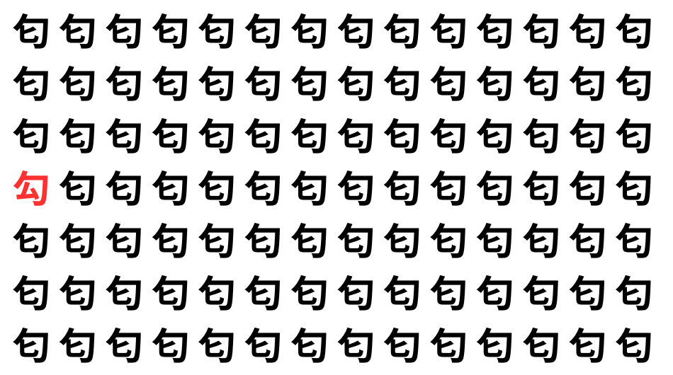 並んだ漢字の中に、ひとつだけ異なる文字が紛れています。集中して探し出し、気分をリフレッシュしましょう!