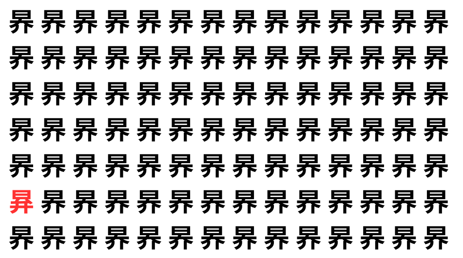 たくさんの「」の中に、よく似た別の漢字が1文字だけ隠れています。