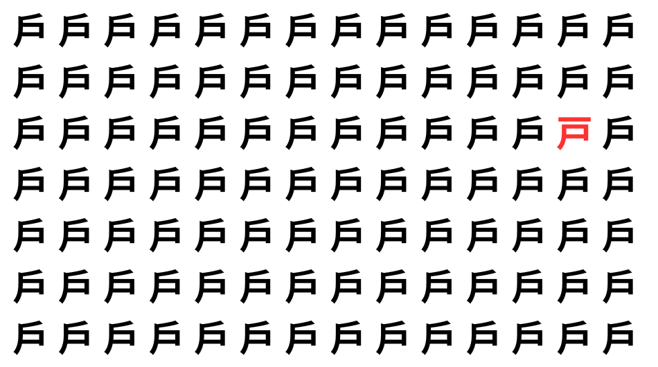 たくさんの「」の中に、よく似た別の漢字が1文字だけ隠れています。