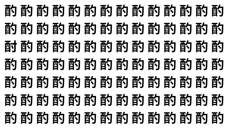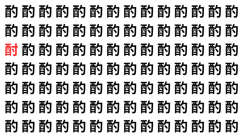 たくさんの「酌」の中に、よく似た別の漢字が1文字だけ隠れています。
