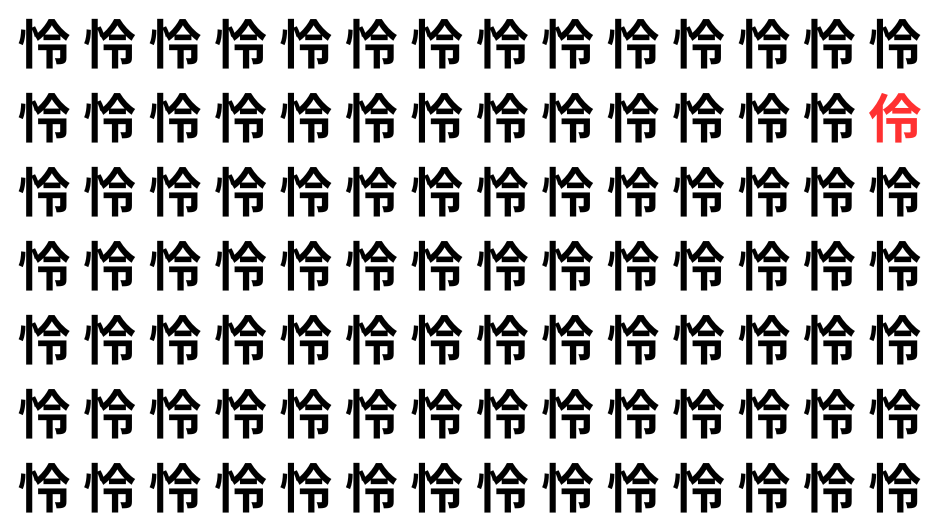 たくさんの「怜」の中に、よく似た別の漢字が1文字だけ隠れています。