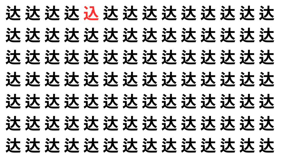 たくさんの「达」の中に、よく似た別の漢字が1文字だけ隠れています。