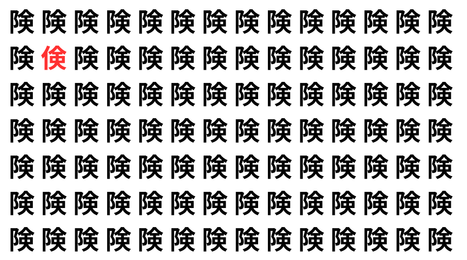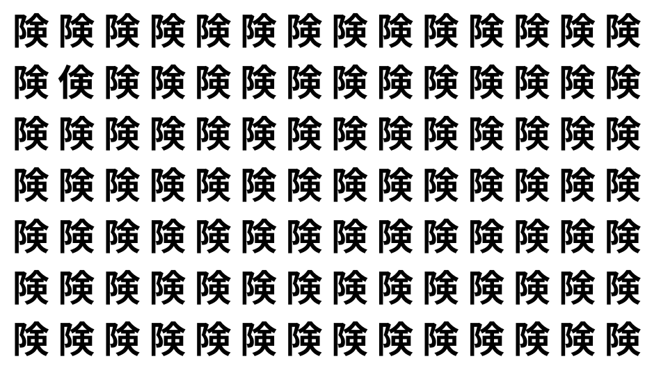 たくさんの「険」の中に、よく似た別の漢字が1文字だけ隠れています。