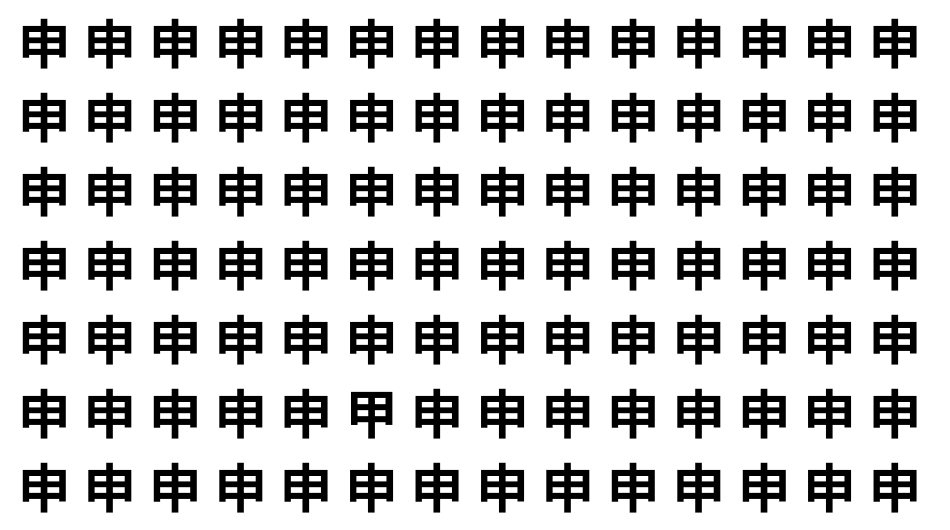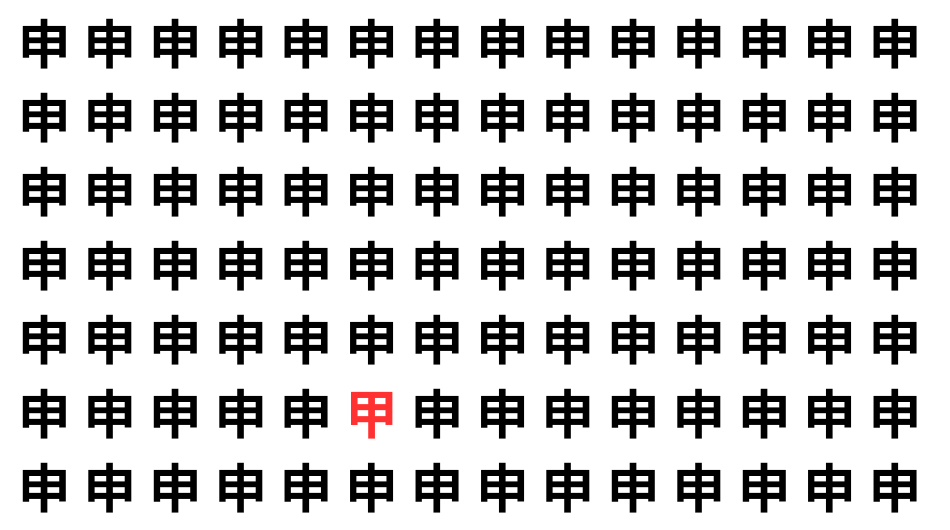 たくさんの「申」の中に、よく似た別の漢字が1文字だけ隠れています。