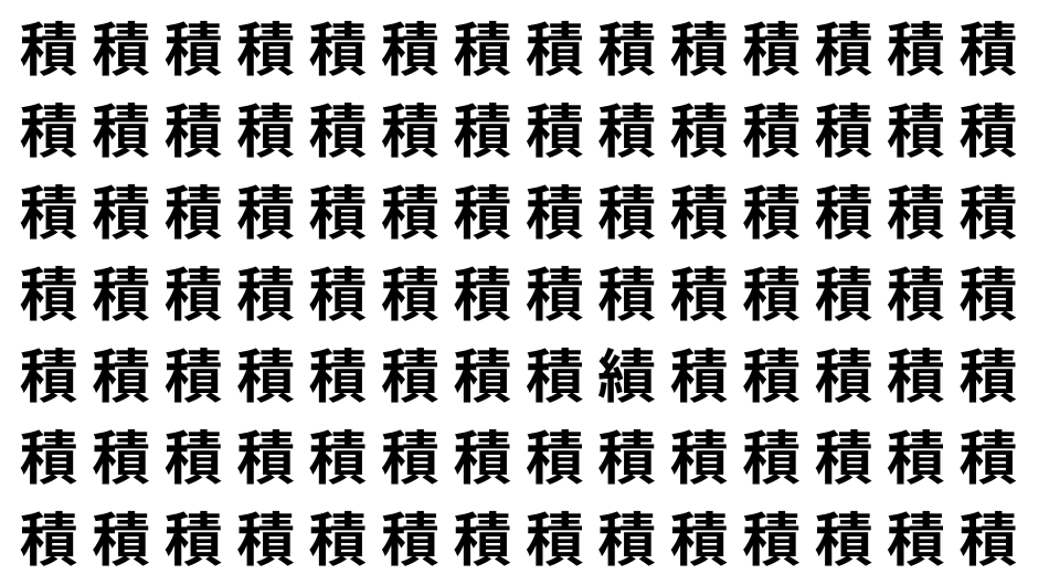 たくさんの「積」の中に、よく似た別の漢字が1文字だけ隠れています。