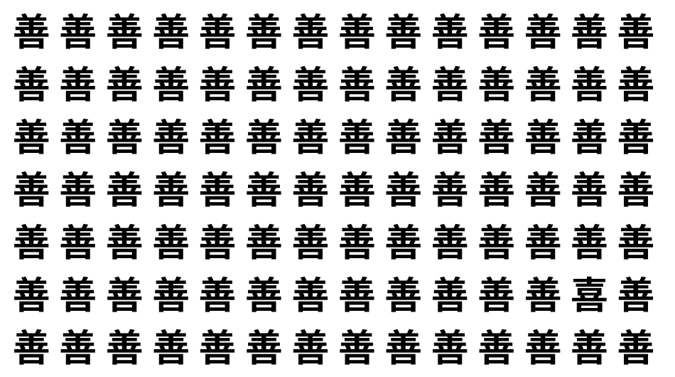 たくさんの「善」の中に、よく似た別の漢字が1文字だけ隠れています。