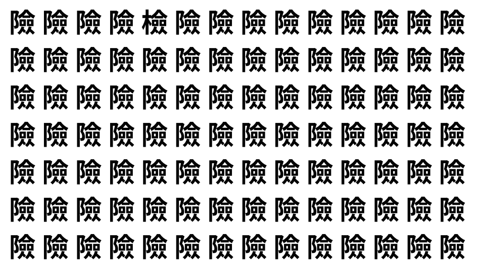 たくさんの「險」の中に、よく似た別の漢字が1文字だけ隠れています。