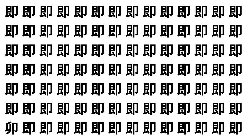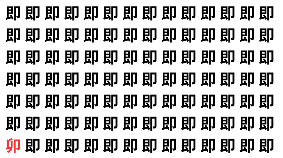 たくさんの「即」の中に、よく似た別の漢字が1文字だけ隠れています。