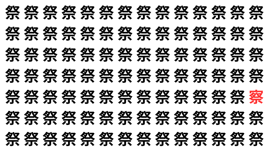 たくさんの「」の中に、よく似た別の漢字が1文字だけ隠れています。