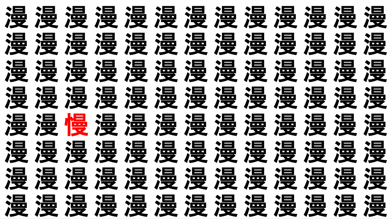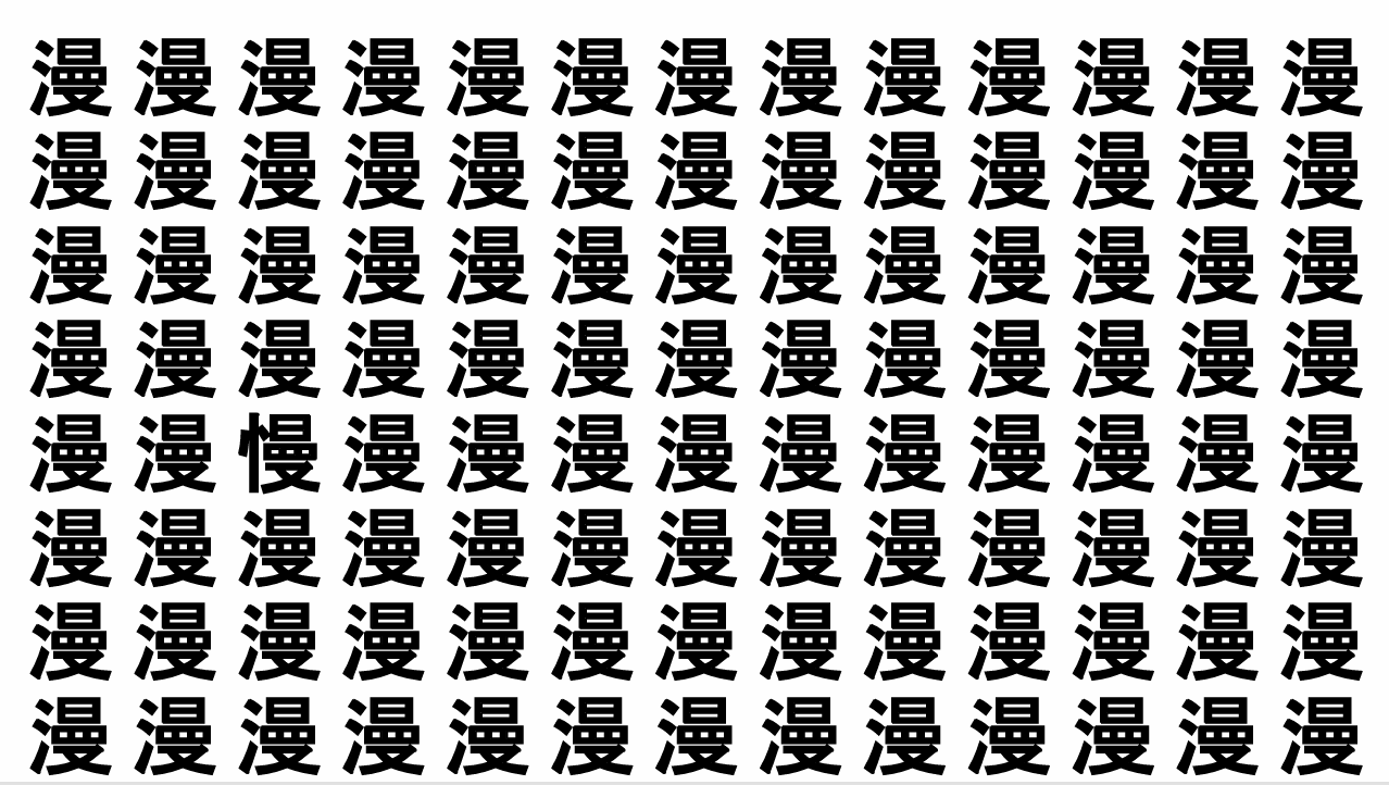 たくさんの「漫」の中に、よく似た別の漢字が1文字だけ隠れています。