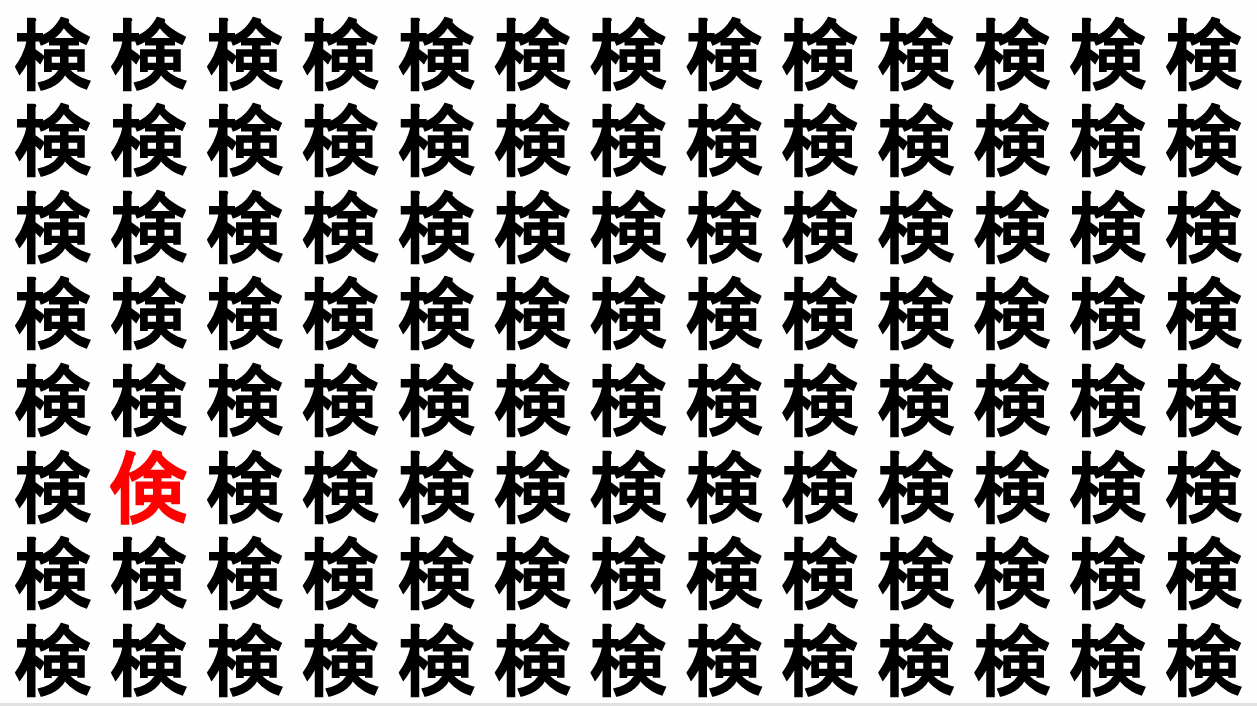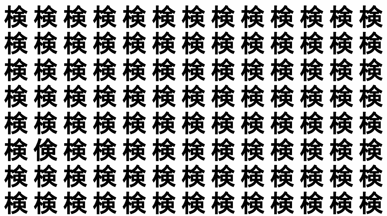 たくさんの「検」の中に、よく似た別の漢字が1文字だけ隠れています。