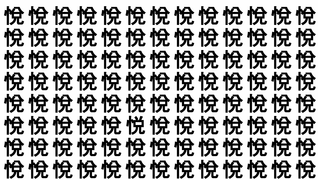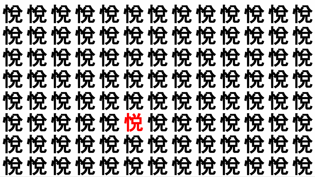 たくさんの「悅」の中に、よく似た別の漢字が1文字だけ隠れています。