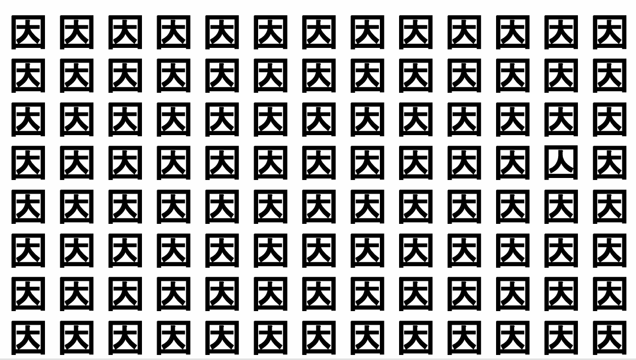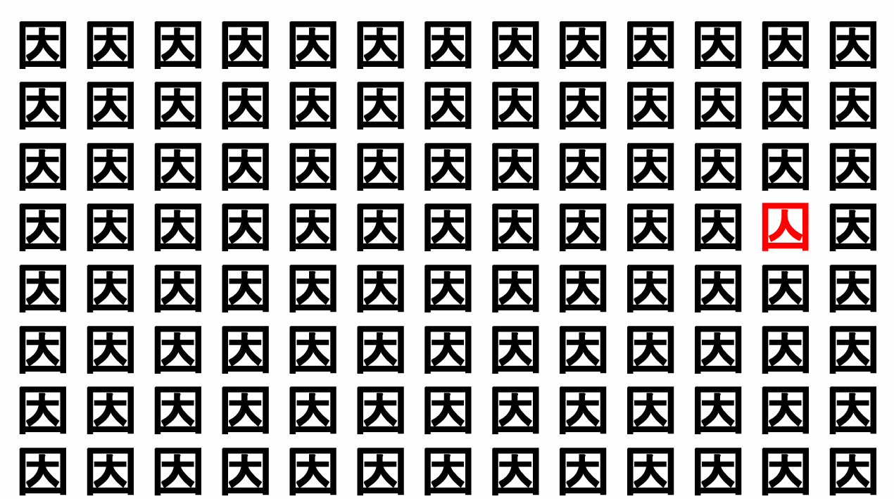 たくさんの「因」の中に、よく似た別の漢字が1文字だけ隠れています。