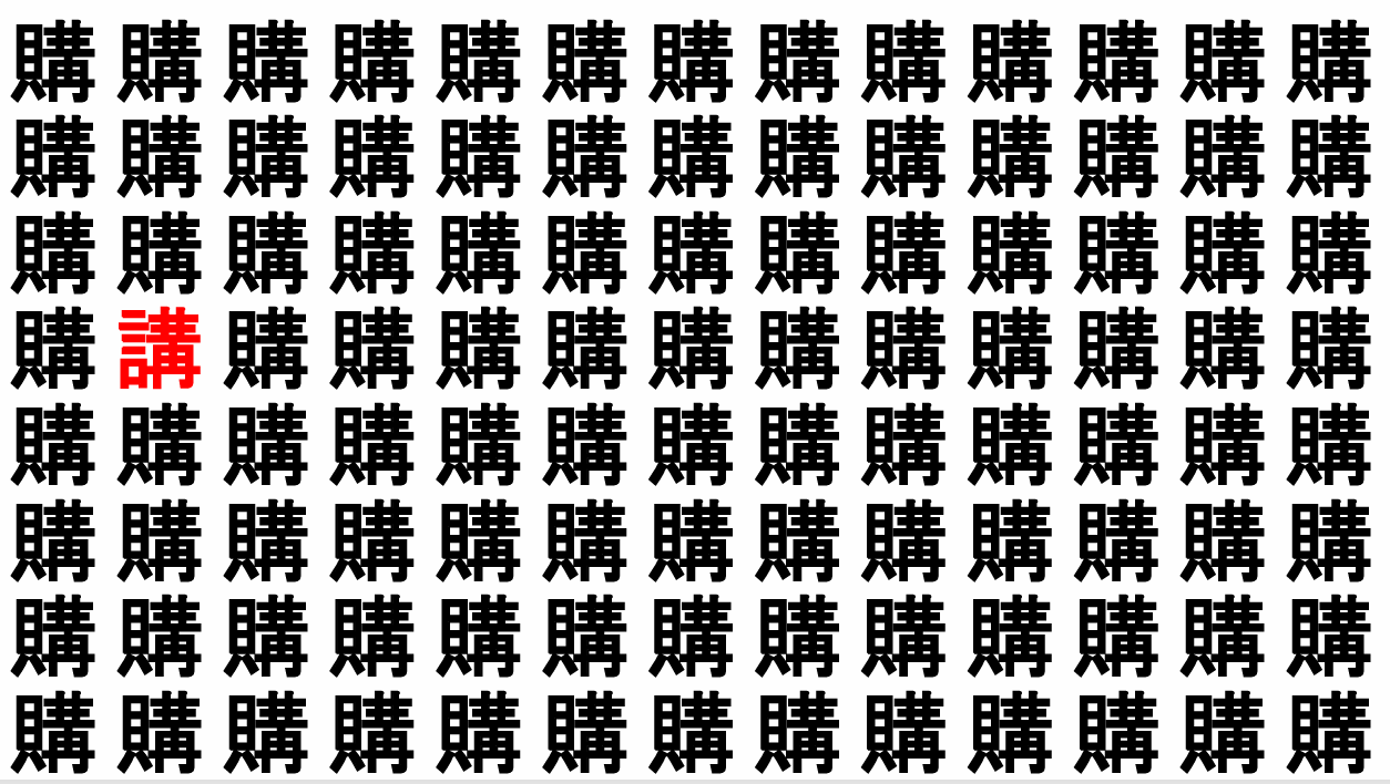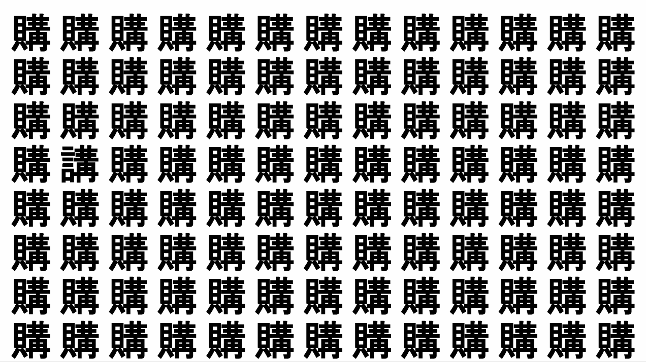 たくさんの「購」の中に、よく似た別の漢字が1文字だけ隠れています。