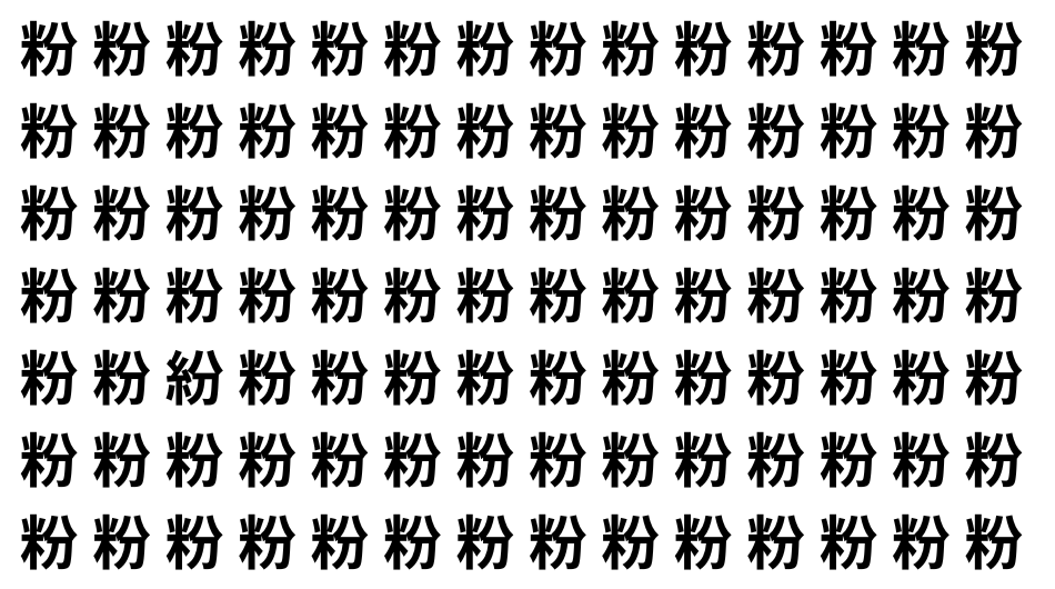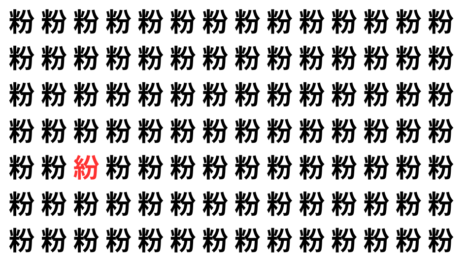たくさんの「粉」の中に、よく似た別の漢字が1文字だけ隠れています。