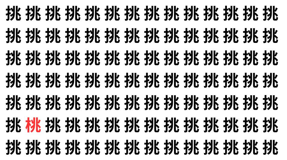 たくさんの「挑」の中に、よく似た別の漢字が1文字だけ隠れています。