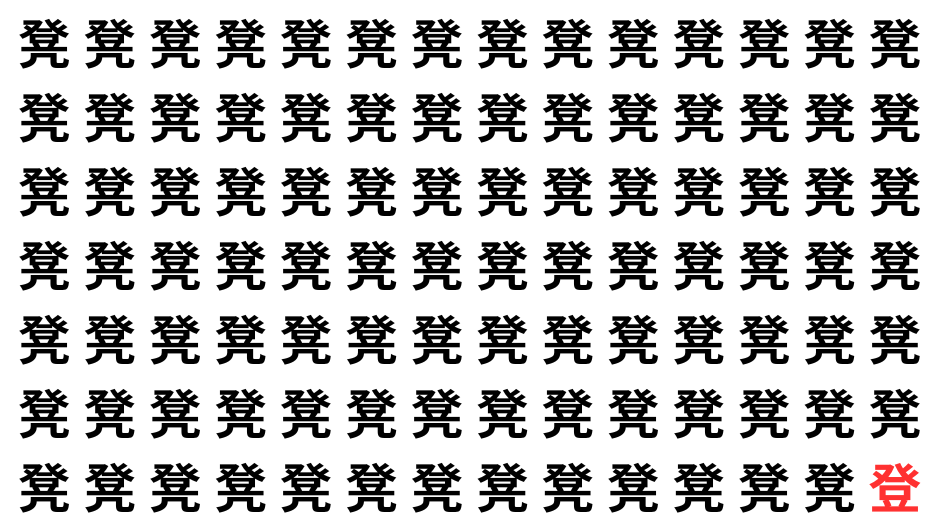たくさんの「凳」の中に、よく似た別の漢字が1文字だけ隠れています。
