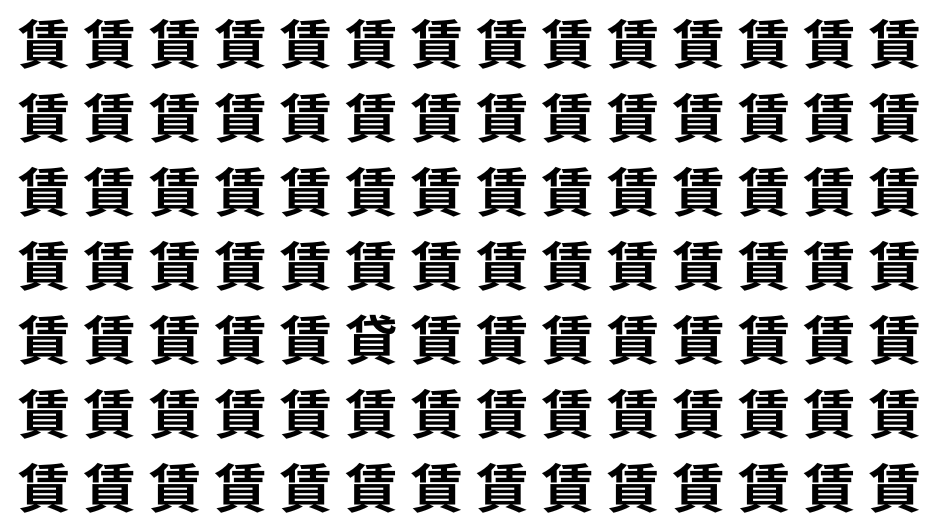 たくさんの「賃」の中に、よく似た別の漢字が1文字だけ隠れています。