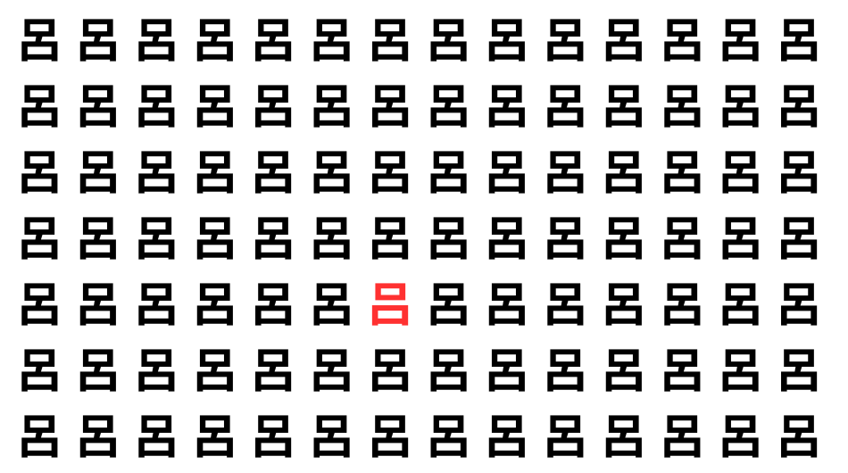 たくさんの「呂」の中に、よく似た別の漢字が1文字だけ隠れています。