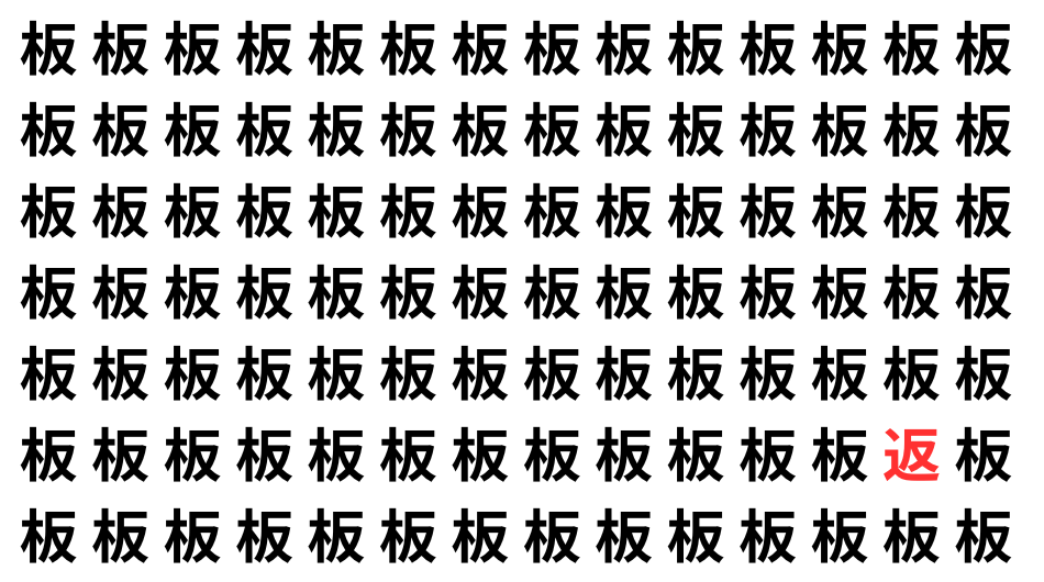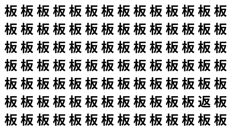 たくさんの「板」の中に、よく似た別の漢字が1文字だけ隠れています。