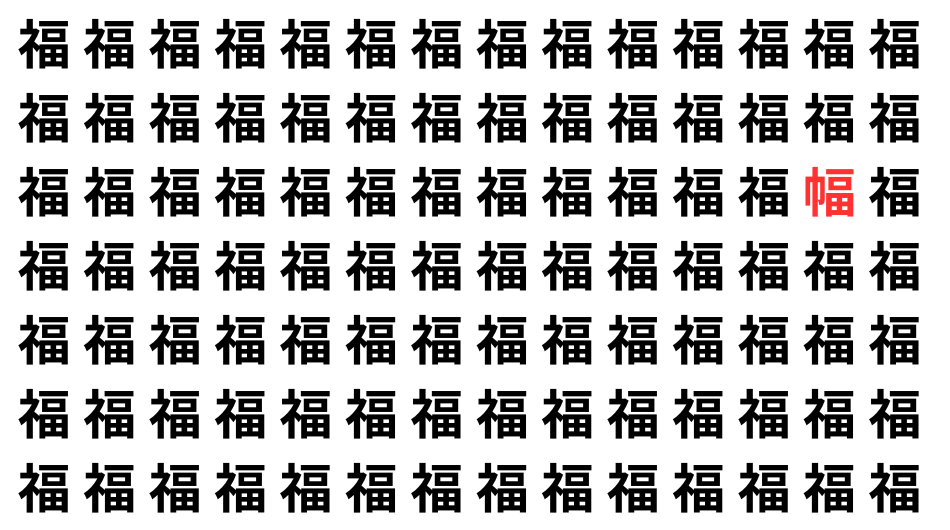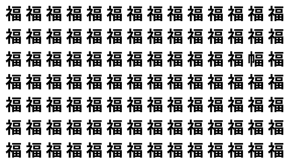 たくさんの「福」の中に、よく似た別の漢字が1文字だけ隠れています。