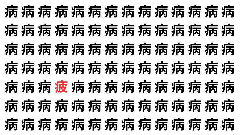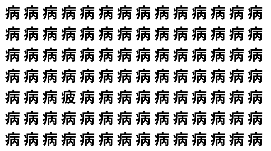 たくさんの「病」の中に、よく似た別の漢字が1文字だけ隠れています。