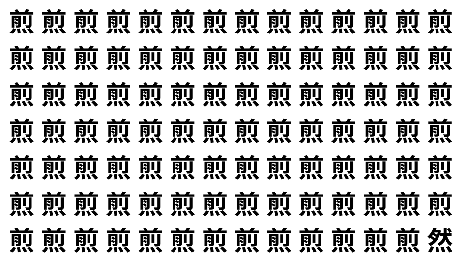 たくさんの「煎」の中に、よく似た別の漢字が1文字だけ隠れています。