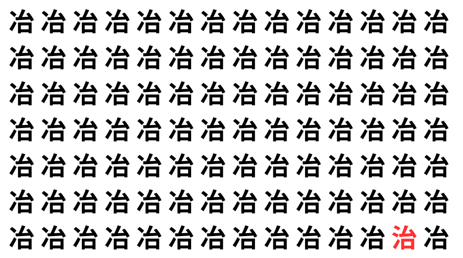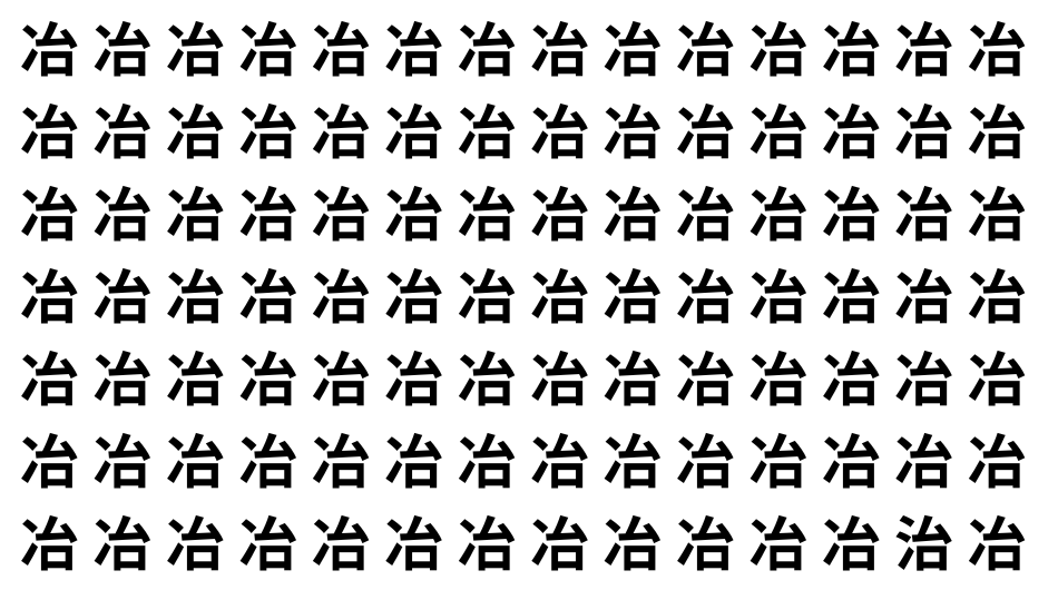 たくさんの「冶」の中に、よく似た別の漢字が1文字だけ隠れています。