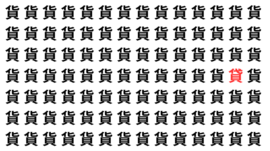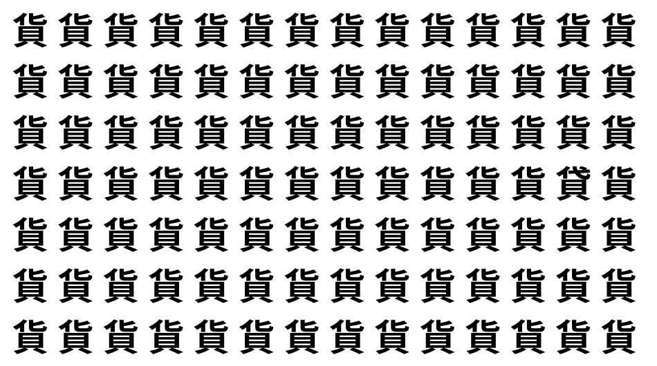 たくさんの「貨」の中に、よく似た別の漢字が1文字だけ隠れています。