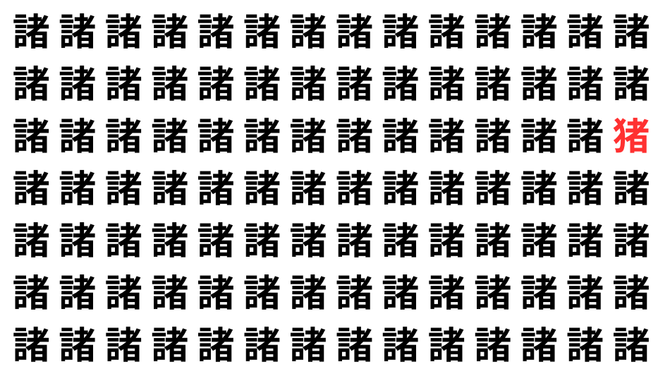 たくさんの「諸」の中に、よく似た別の漢字が1文字だけ隠れています。