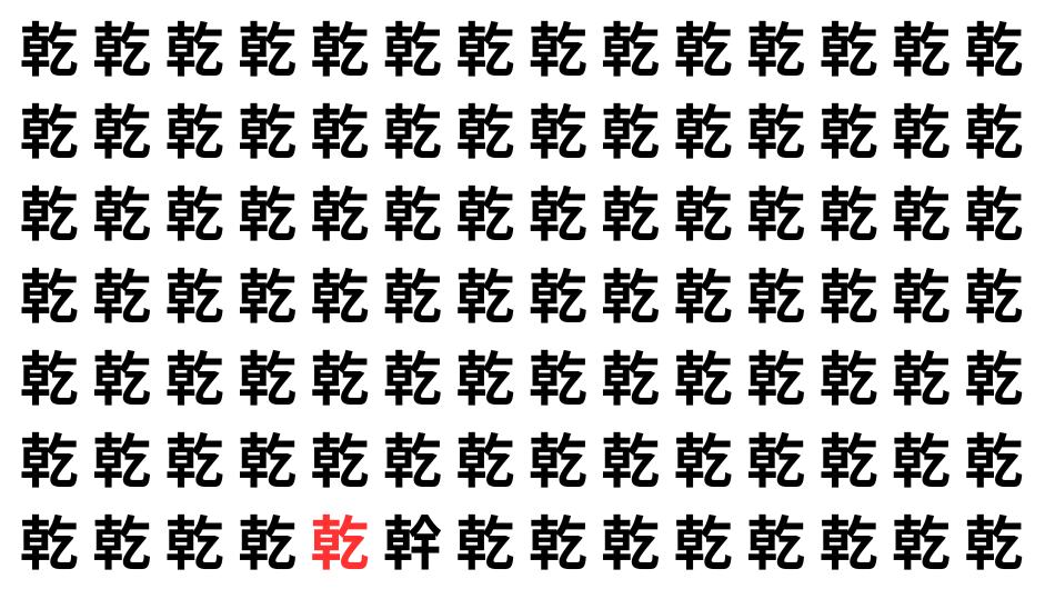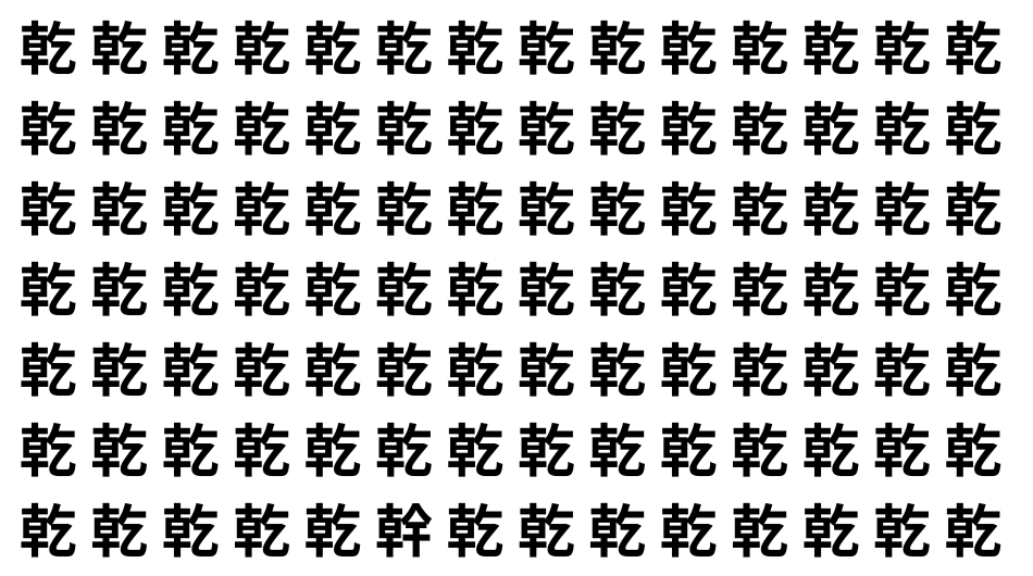 たくさんの「乾」の中に、よく似た別の漢字が1文字だけ隠れています。