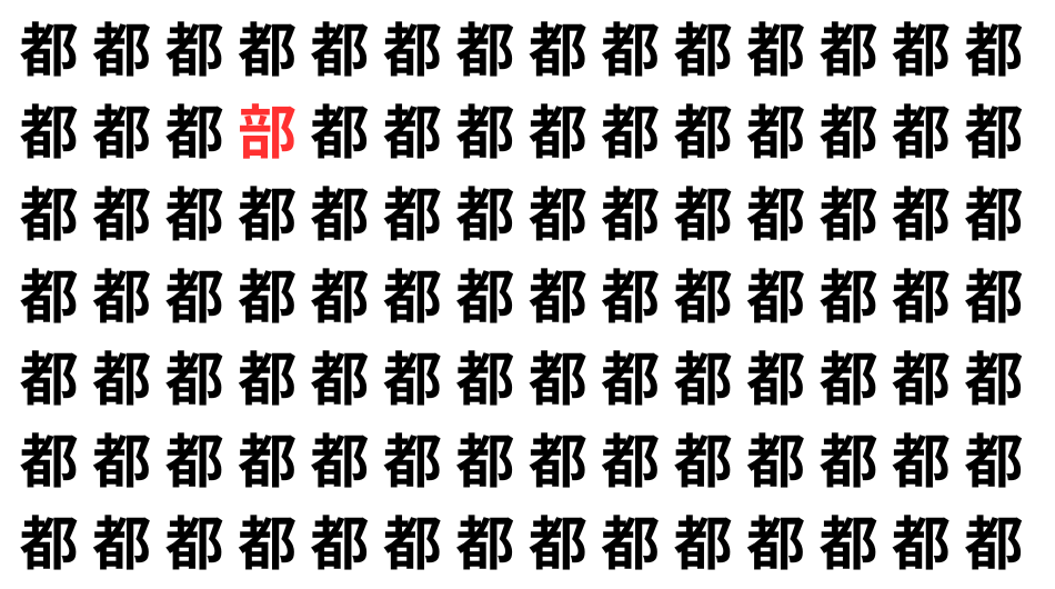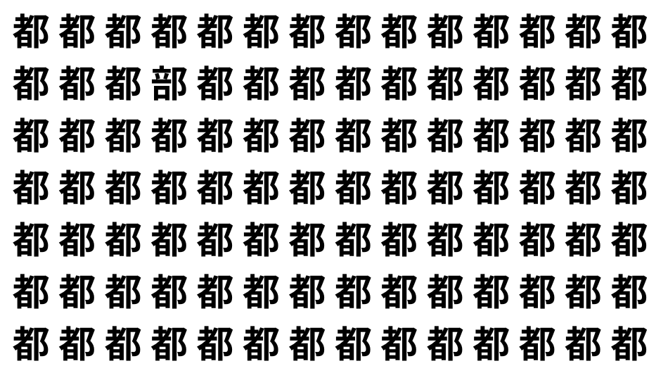 たくさんの「都」の中に、よく似た別の漢字が1文字だけ隠れています。