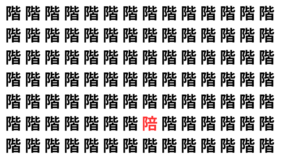 たくさんの「階」の中に、よく似た別の漢字が1文字だけ隠れています。
