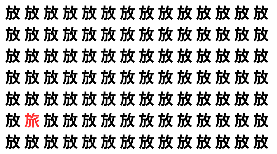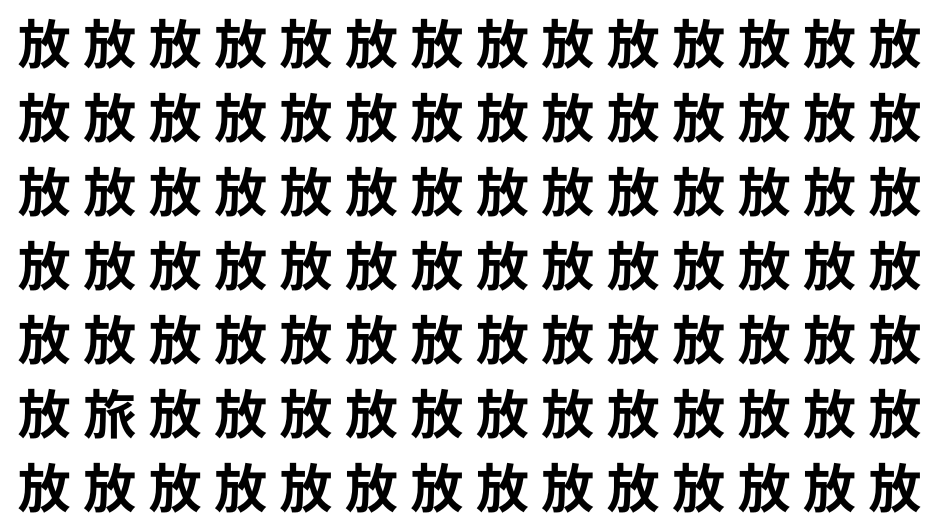 たくさんの「放」の中に、よく似た別の漢字が1文字だけ隠れています。