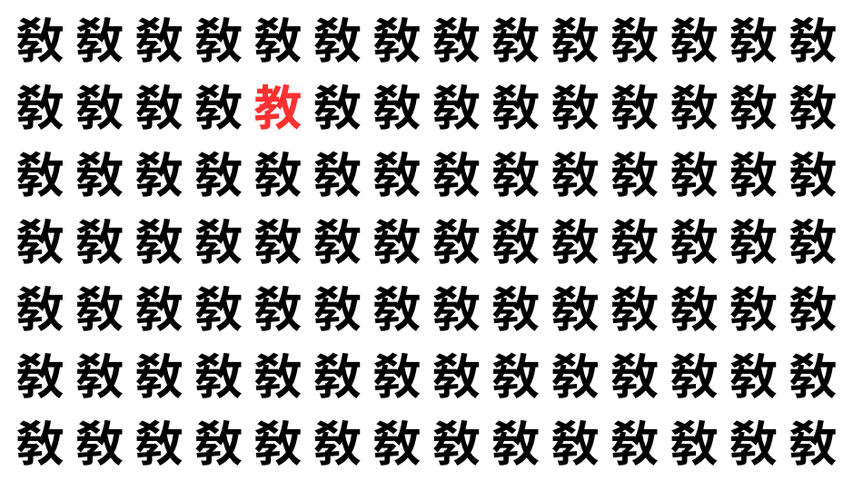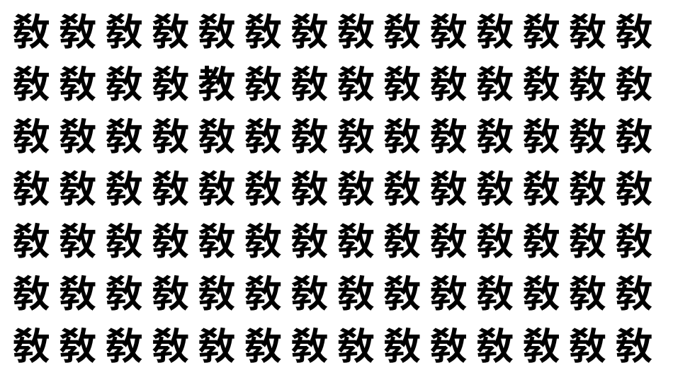たくさんの「敎」の中に、よく似た別の漢字が1文字だけ隠れています。