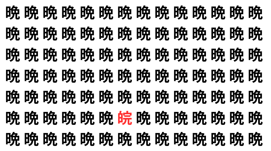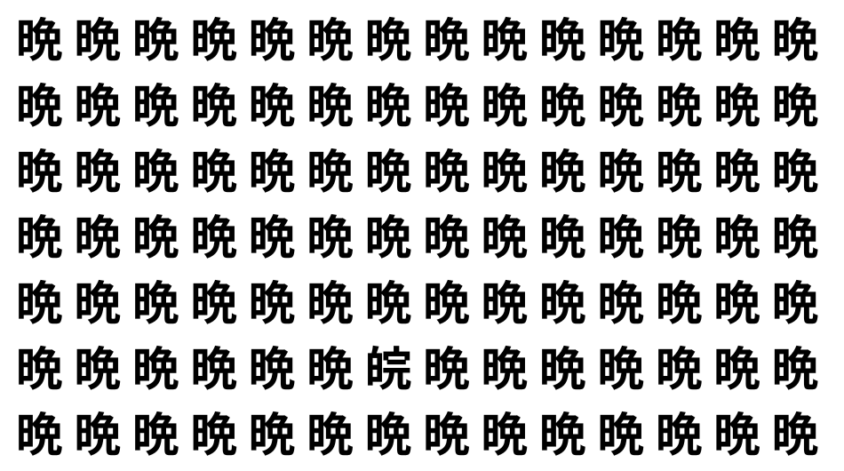 たくさんの「晩」の中に、よく似た別の漢字が1文字だけ隠れています。