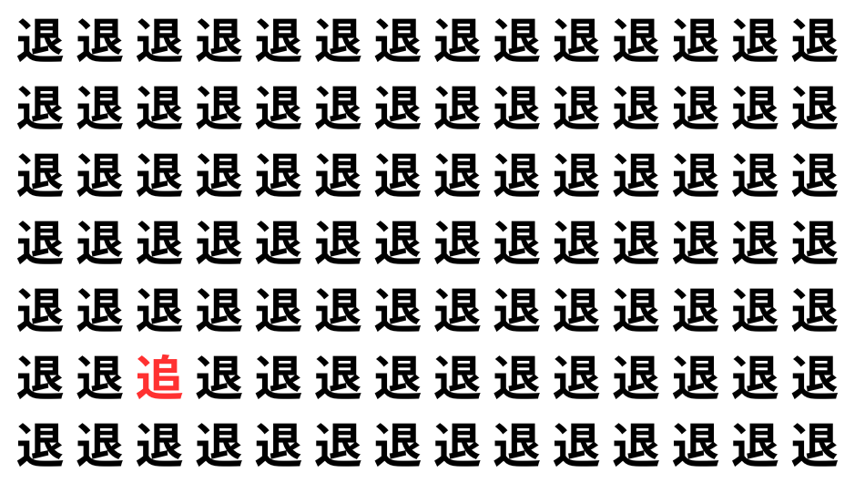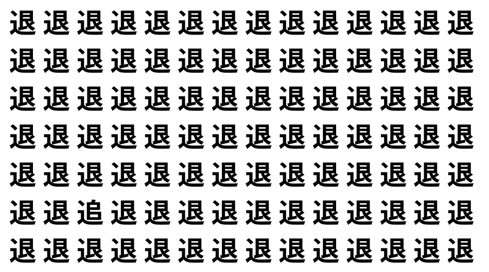 たくさんの「退」の中に、よく似た別の漢字が1文字だけ隠れています。