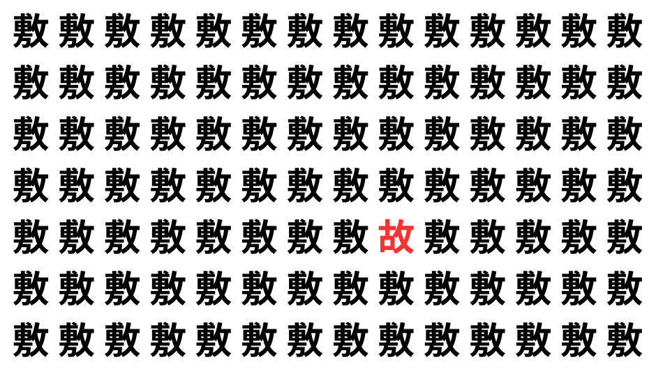 たくさんの「敷」の中に、よく似た別の漢字が1文字だけ隠れています。