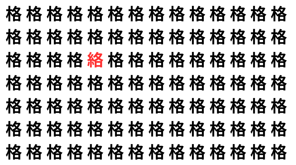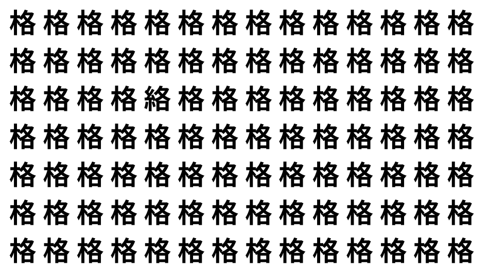 たくさんの「格」の中に、よく似た別の漢字が1文字だけ隠れています。
