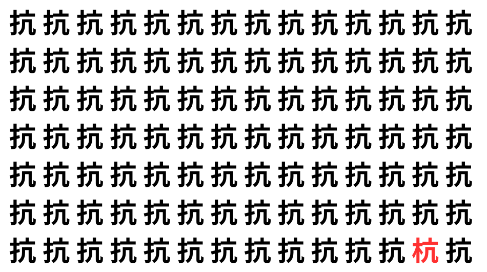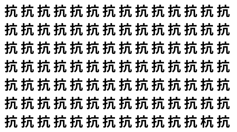 たくさんの「抗」の中に、よく似た別の漢字が1文字だけ隠れています。