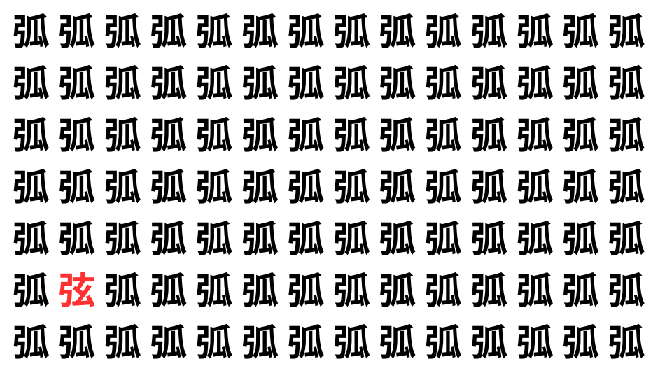 たくさんの「弧」の中に、よく似た別の漢字が1文字だけ隠れています。