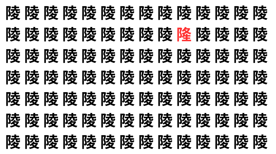 たくさんの「陵」の中に、よく似た別の漢字が1文字だけ隠れています。