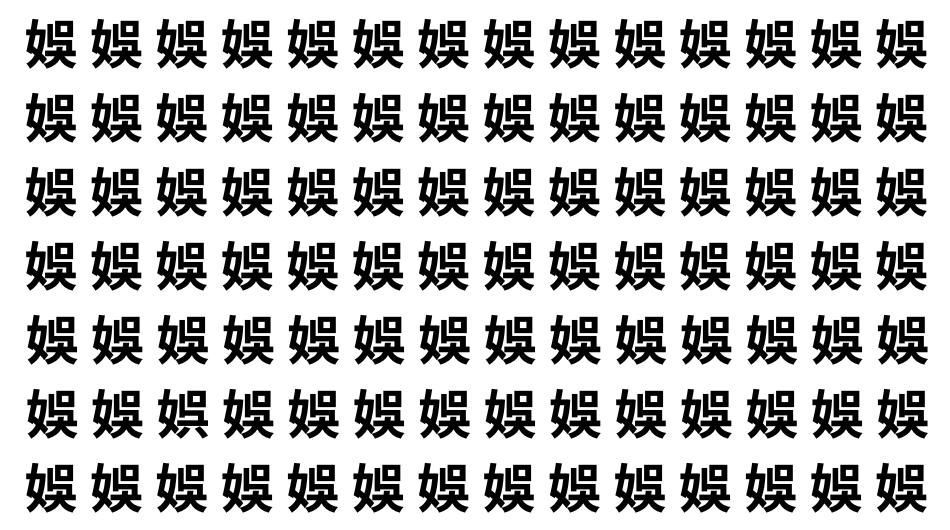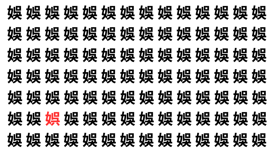 たくさんの「娛」の中に、よく似た別の漢字が1文字だけ隠れています。