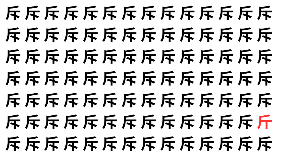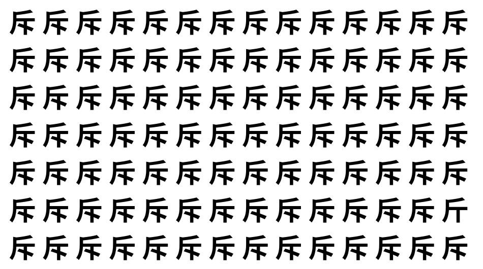 たくさんの「斥」の中に、よく似た別の漢字が1文字だけ隠れています。