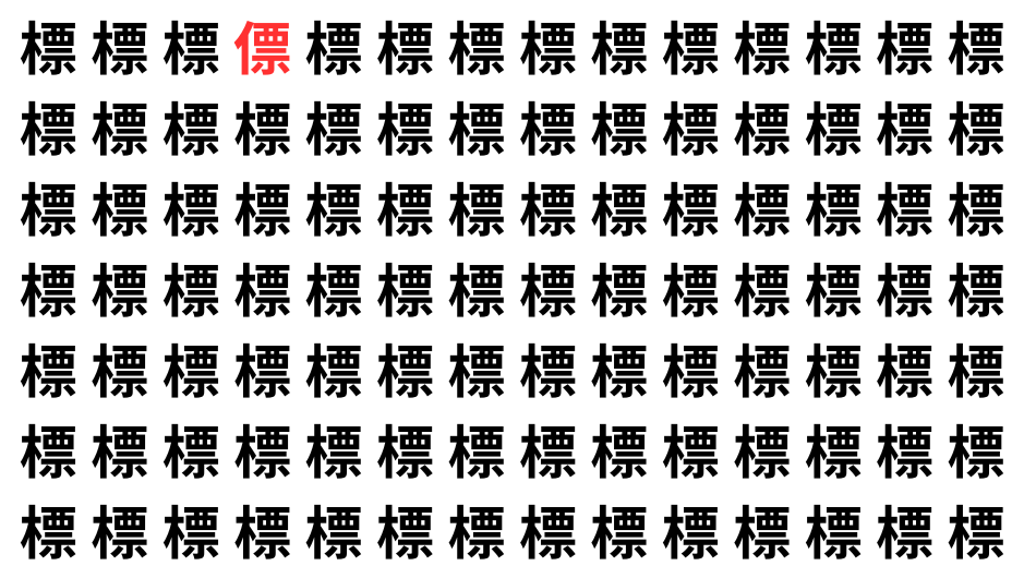たくさんの「標」の中に、よく似た別の漢字が1文字だけ隠れています。