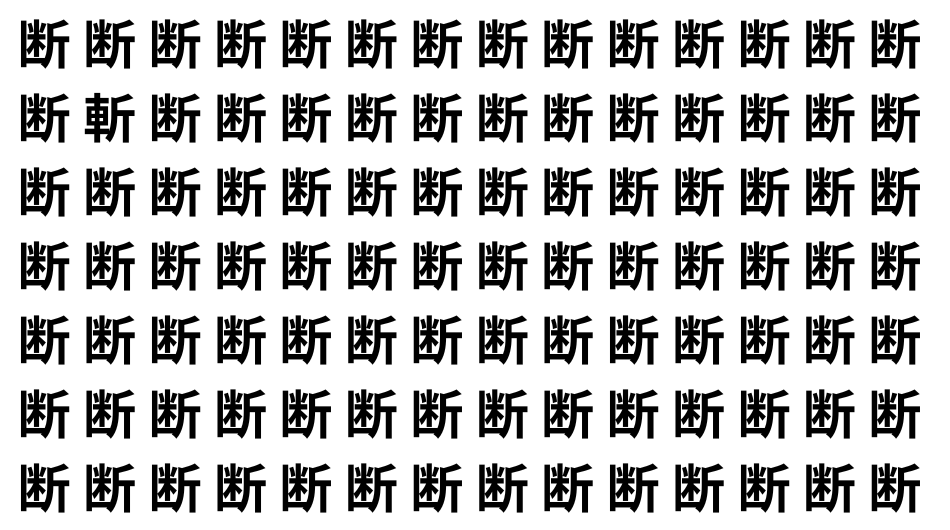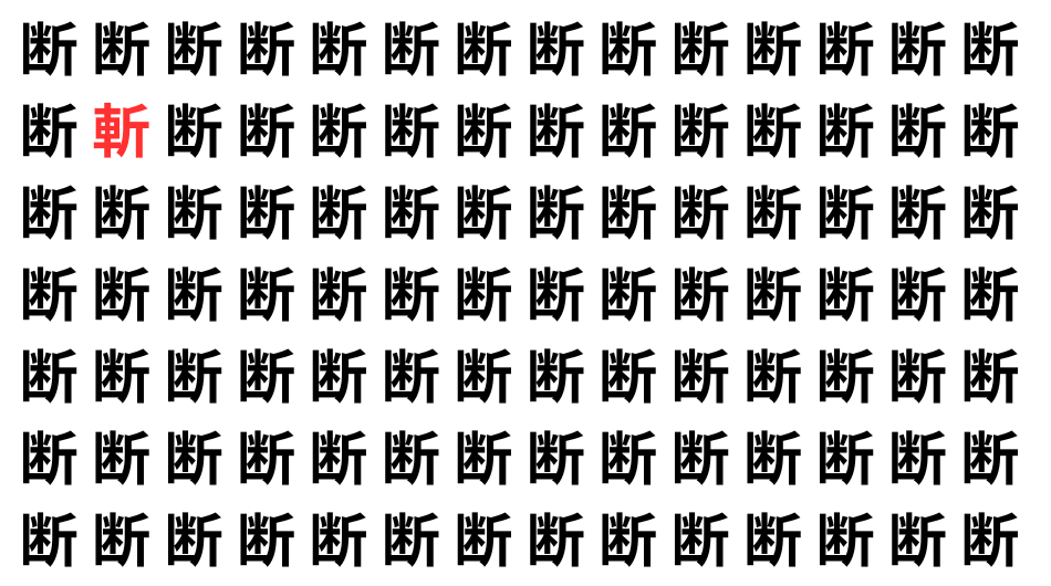 たくさんの「断」の中に、よく似た別の漢字が1文字だけ隠れています。