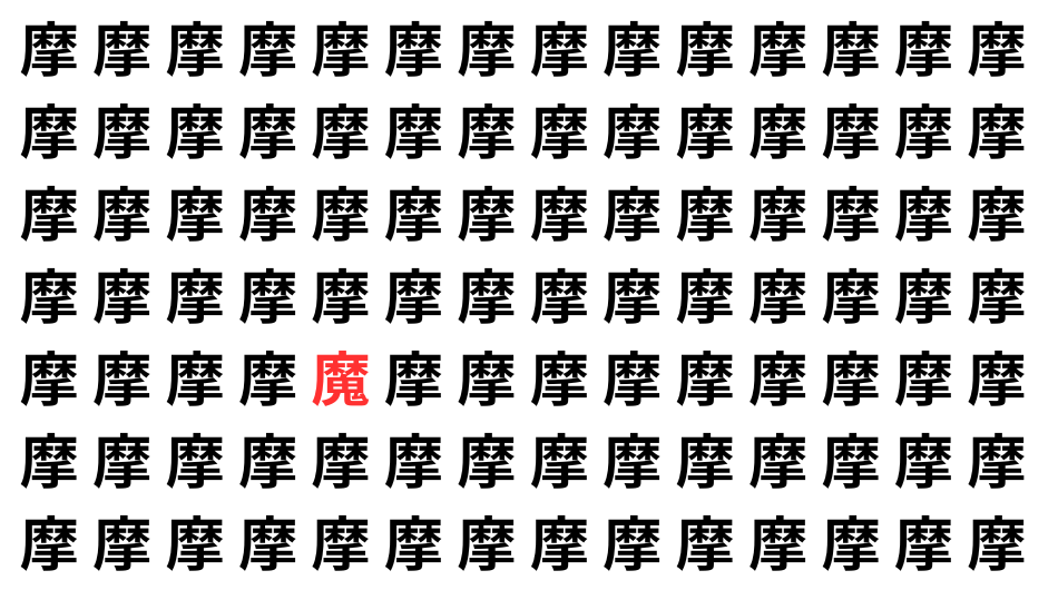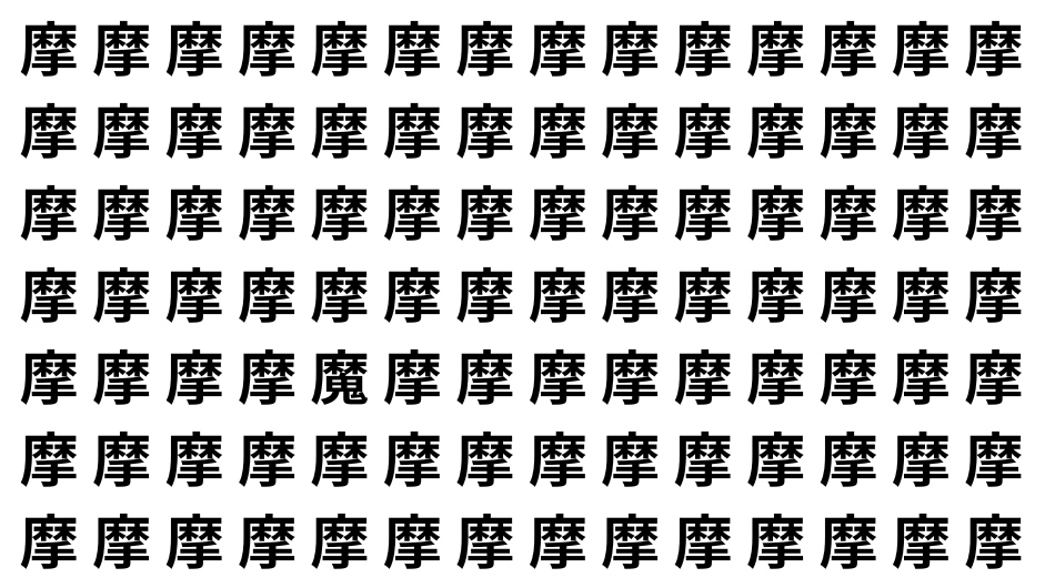 たくさんの「摩」の中に、よく似た別の漢字が1文字だけ隠れています。